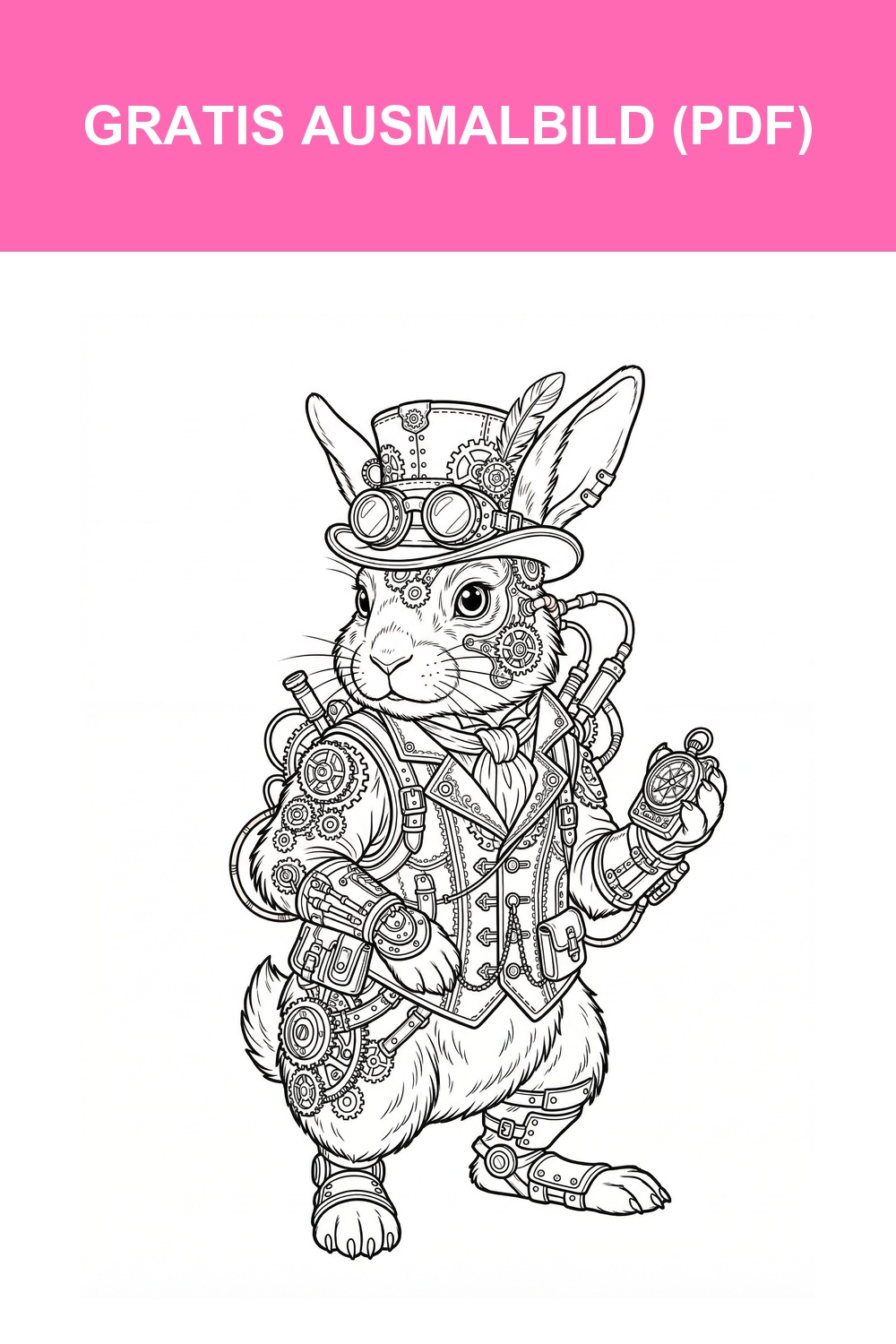 Hier kannst du Ausmalbild Detailreicher Steampunk Hase direkt herunterladen. 📥 KOSTENLOS HERUNTERLADEN (PDF)