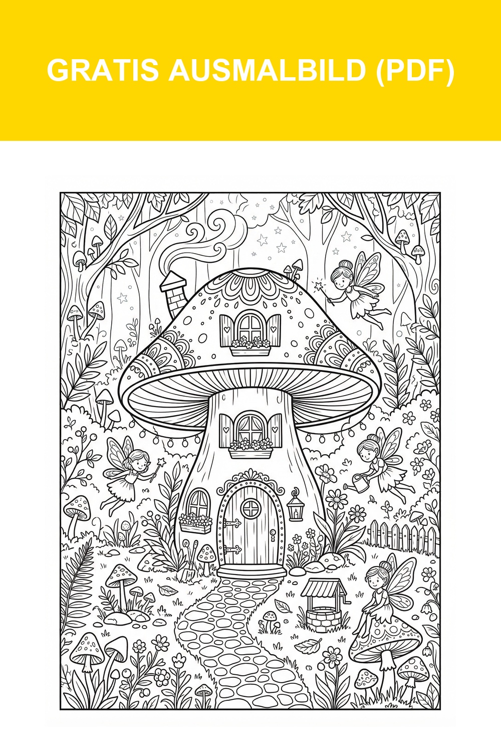 Hier kannst du Ausmalbild Fabelwesen Haus Im Pilz direkt herunterladen. 📥 KOSTENLOS HERUNTERLADEN (PDF)