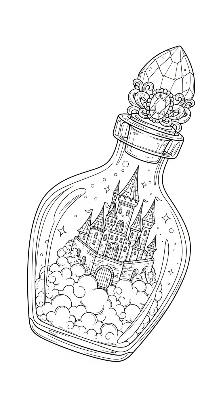 Hier kannst du Ausmalbild Fantasie Schloss In Einer Flasche direkt herunterladen. 📥 KOSTENLOS HERUNTERLADEN (PDF)