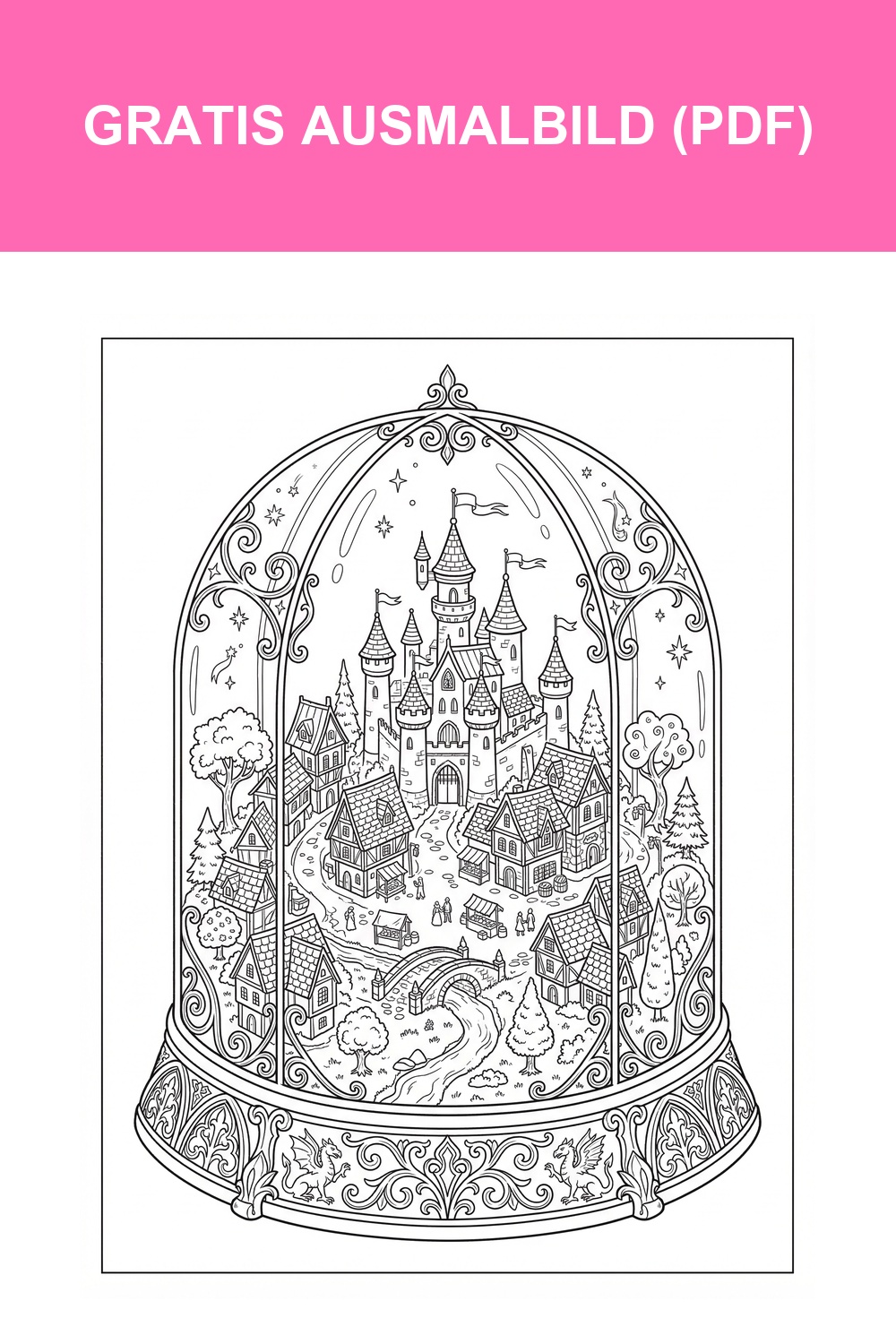 Hier kannst du Ausmalbild Kleine Stadt In Einer Glaskuppel direkt herunterladen. 📥 KOSTENLOS HERUNTERLADEN (PDF)