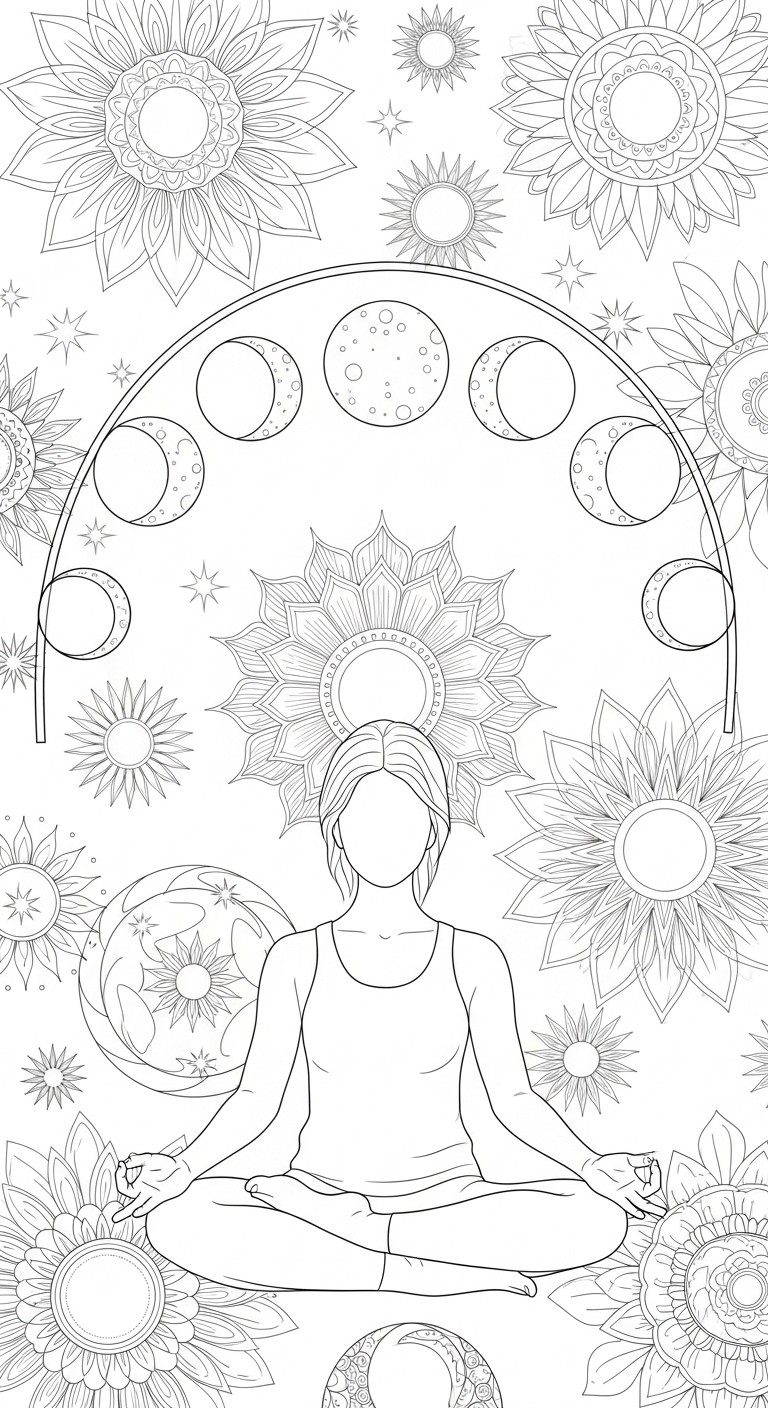 Hier kannst du Ausmalbild Spirituelles Yoga Motiv Mit Mondphasen direkt herunterladen. 📥 KOSTENLOS HERUNTERLADEN (PDF)